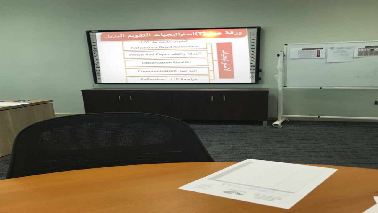ففي خلال الورشة تطرقت الدكتورة إلى عدة محاور من أهمها : التقويم من أجل التعلم و الهدف من التقويم البديل و استراتيجيات التقويم البديل و كيفية تصميم نماذج التقويم البديل. فقد تم عمل مجموعات لمناقشة أوراق العمل و القيام ببعض الأنشطة ,فقد احتوت على عروض مرئية و قد تم توزيع الحقائب على الحاضرات. الورشة تميزت بتفاعل مثمر من المشاركات في كافة المحاور.