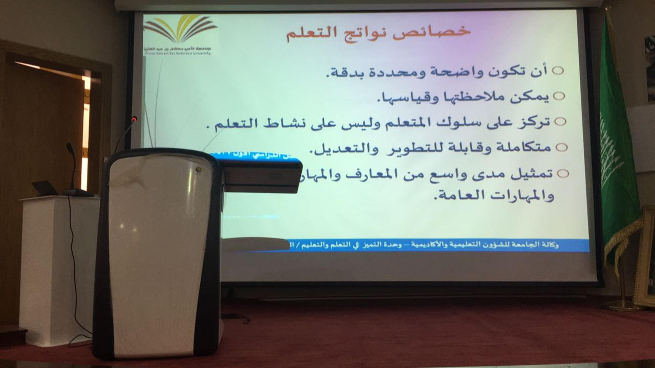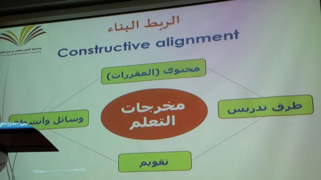 نظمت وحدة التميز العلمي ممثلة بـالأستاذة فاطمة الكليب بالتعاون مع وحدة العمل الطلابي بكلية العلوم والدراسات الإنسانية بحوطة بني تميم ورشة عمل بعنوان (صياغة نواتج التعلم) قدمها د. يسري عطيه أبو العينين مستشار وكالة الجامعة للشؤون التعليمية والأكاديمية. اشتملت ورشة العمل على عدة محاور منها التعلم القائم على النواتج المستهدفة، مستويات الأهداف، خصائص نواتج التعلم وكيفية صياغة أهداف المقرر أو البرنامج مع عرض أمثلة على ذلك. وقد تخلل ورشة العمل العديد من النقاشات حول تلك المحاور. وفي ختام الورشة أجاب الدكتور على بعض الاستفسارات والتساؤلات المطروحة من الحاضرات بعدها قدمت رئيسة وحدة التميز بالكلية شكرها وتقديرها للدكتور يسري على مابذله من جهد ووقت لتقديم هذه الورشة الفعالة.