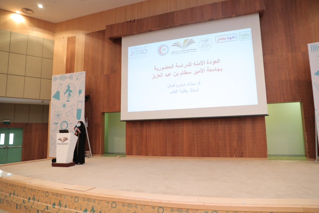 ثم تفضلت سعادة الدكتورة سناء كمال مُمثِّلةً للمستشفى الجامعي في تقديم بعض التوجيهات الصحية الواجب التعامل معها من قبل موظفي وموظفات الجامعة، بالإضافة إلى الحالات المتنوعة وكيفية التعامل معها وفق المستوى المطلوب، مستعرضةً نسب التحصين لمنسوبي ومنسوبات الجامعة، وختمت حديثها بالإجابة عن التساؤلات المتوقع أن تواجه الهيئة التعليمية والإدارية والطلبة، وفق للاشتراطات الصحية المعتمدة التي أقرتها هيئة الصحة العامة.