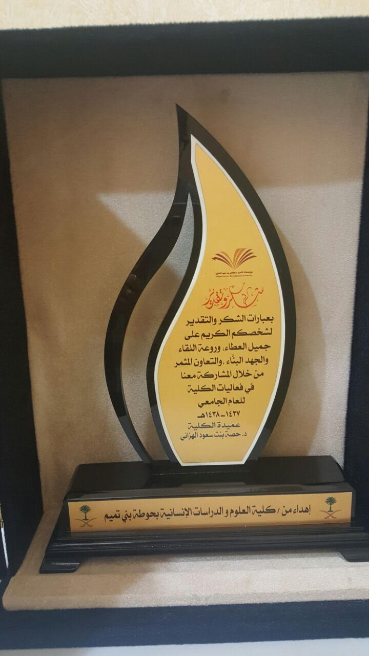 هذا وقد حضر الورشة أعضاء هيئة التدريس بالكلية وأثنى جميع الحضور على محتوى الورشة وطريقة عرضها وثرائها بالمعلومت الهامة. واختتمت الورشة في تمام الساعة الثانية عشر ظهرًا بتكريم د. طارق الخطيب من قبل إدارة الكلية بمنحه درع وشهادة شكر وتقدير كما تم منح أ. مظفر عباس شهادة شكر وتقدير لمشاركته بالدورة.