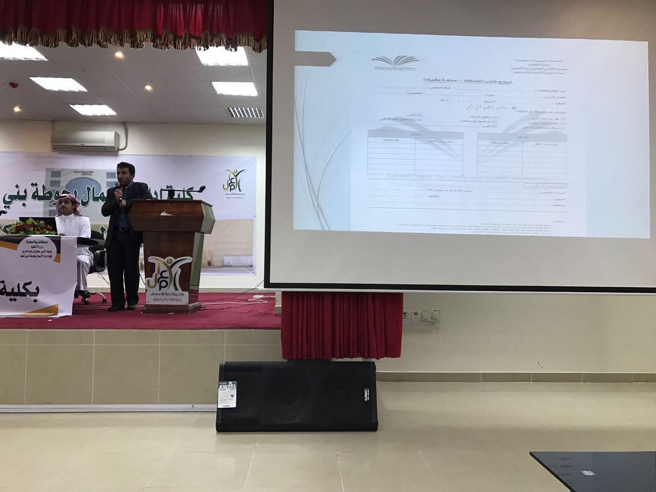 نظمت وحدة التطوير والجودة في كلية إدارة الأعمال بحوطة بني تميم ورشة عمل تحت عنوان: (أسس الإرشاد الأكاديمي والخطط الدراسية بالكلية)، وذلك في يوم الاثنين ١٤٣٨/٣/٦.
