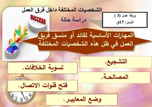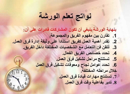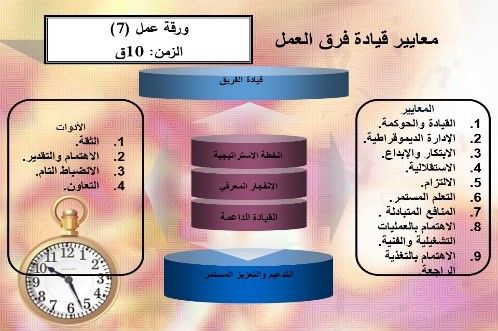 - أهمية العمل كفريق استناداً على وثيقة إدارة فرق العمل.