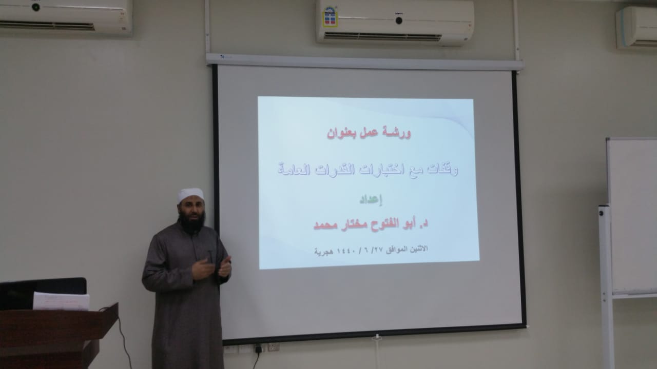 امتدادا للتعاون المستمر والتواصل الفعَّال بين كلية التربية وإدارة التعليم بوادي الدواسر في دعم وتطوير العملية التعليمية ، أطلقت كلية التربية مجموعة ورش تدريبية للمعلمين بإدارة تعليم وادي الدواسر، وضمن هذه الورش التدريبية أقيمت اليوم الإثنين الموافق 27 / 6 / 1440 هـ ورشة تدريبية بعنوان: وقفات مع اختبارات القدرات العامة. قدمها د. أبو الفتوح مختار القراميطي الأستاذ المساعد بقسم العلوم التربوية.