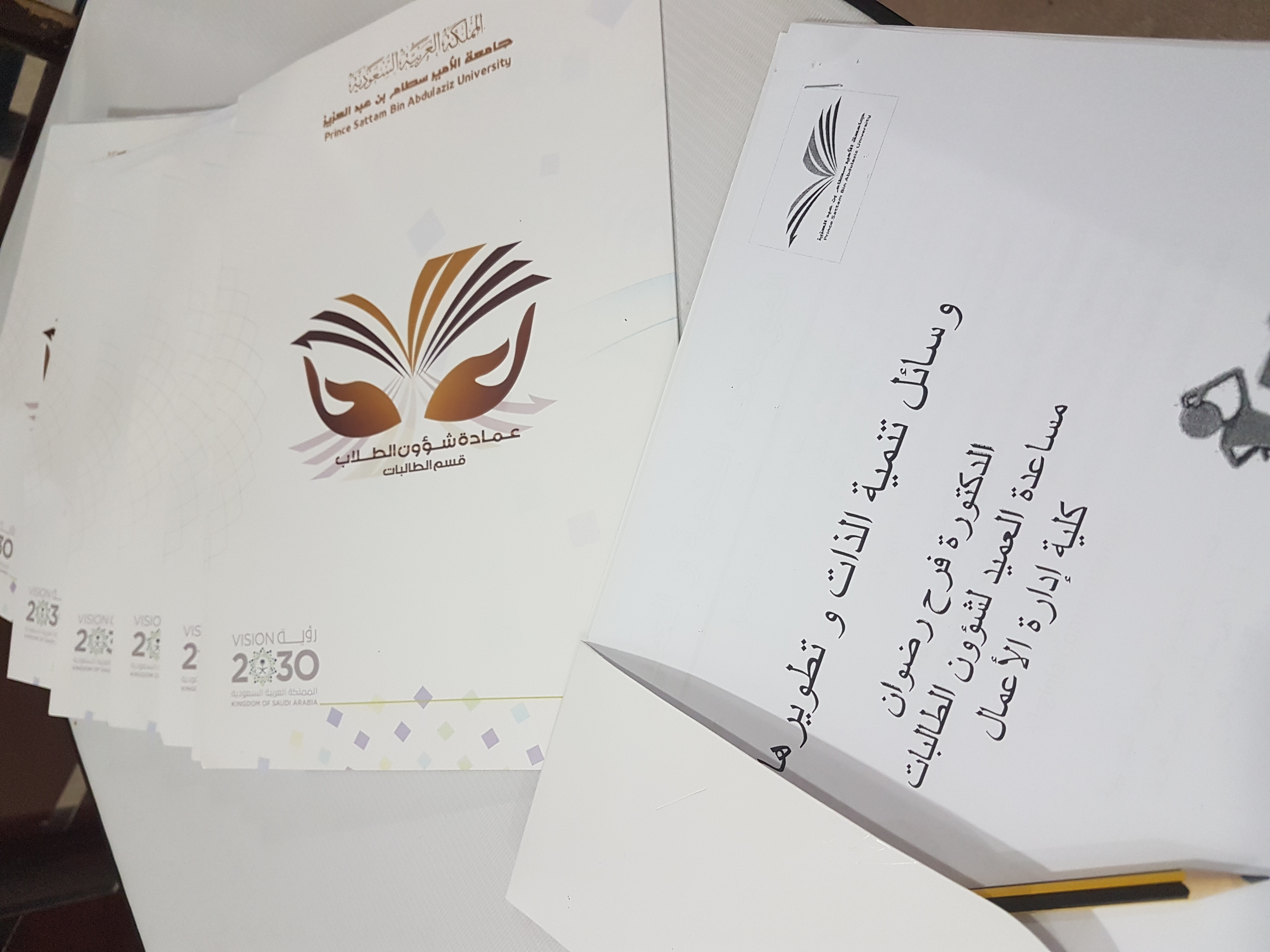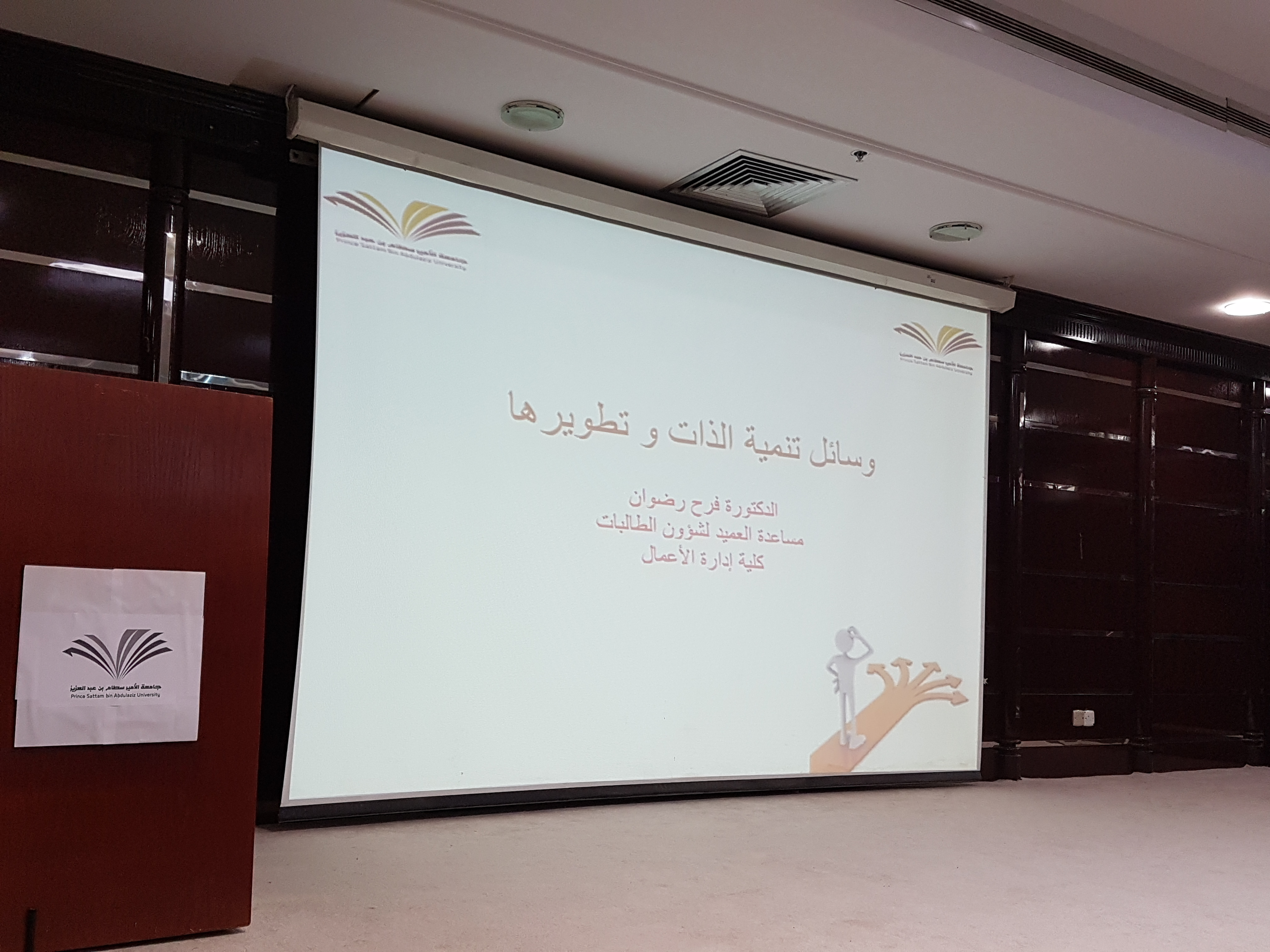 نظمت شعبة المجالس الطلابية بعمادة شؤون الطلاب (أقسام الطالبات) يوم الثلاثاء 17/ 5/ 1438هـ، ورشة عمل بعنوان (وسائل تنمية الذات وتطويرها) للدكتورة فرح رضوان