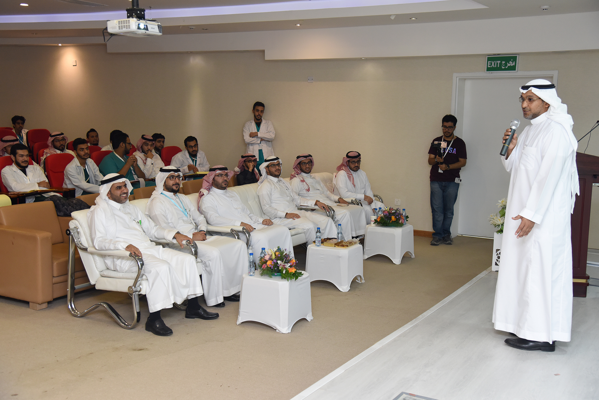 بعد ذلك تحدث العميد الدكتور صالح الدخيل عن العمل داخل أجنحة المستشفيات وبرامج التدريب الإكلينيكي .