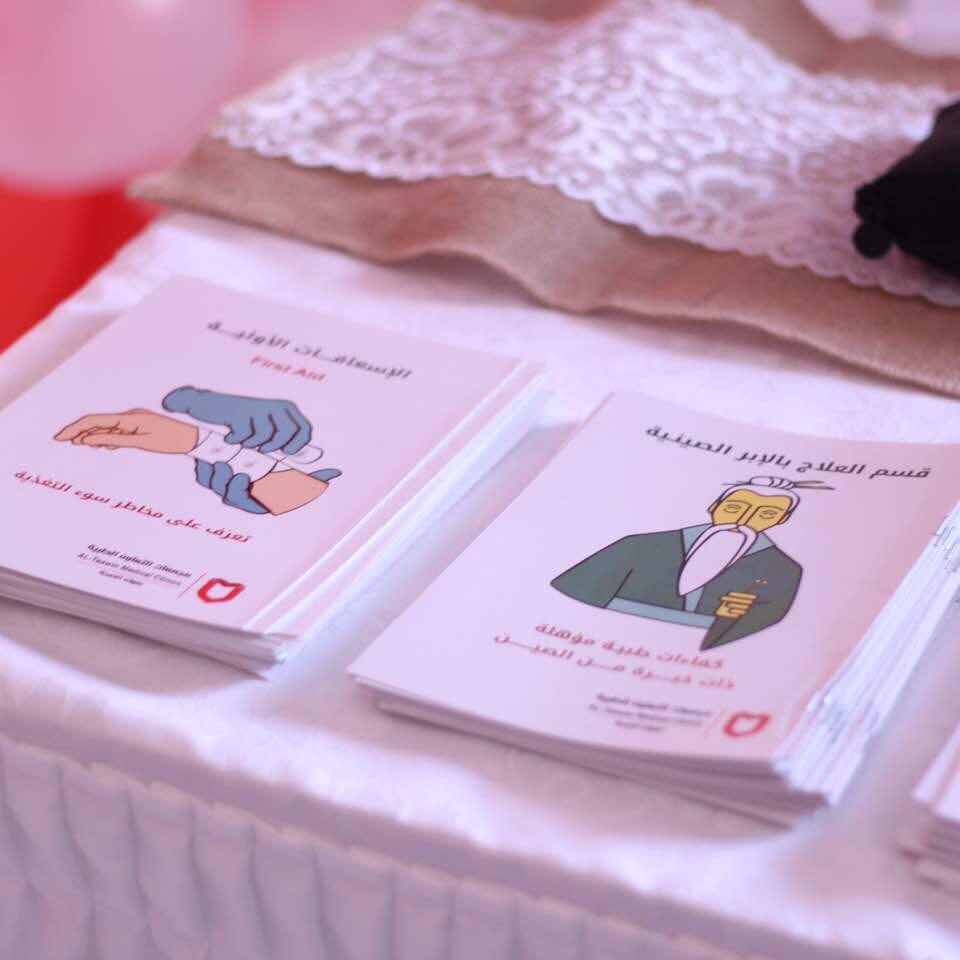 ويشرف على الأركان عدد من خريجات القسم اللاتي تم توظيفهن لتتحدث عن خبرتها في مجال التوظيف وأهمية المهنة بالنسبة للمجتمع.