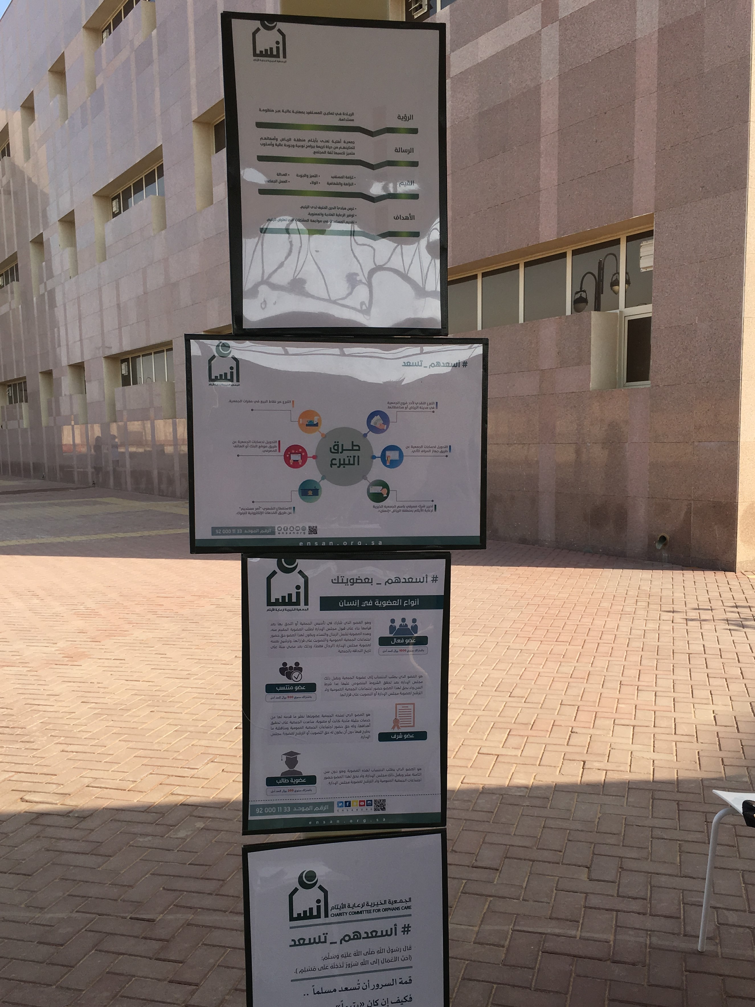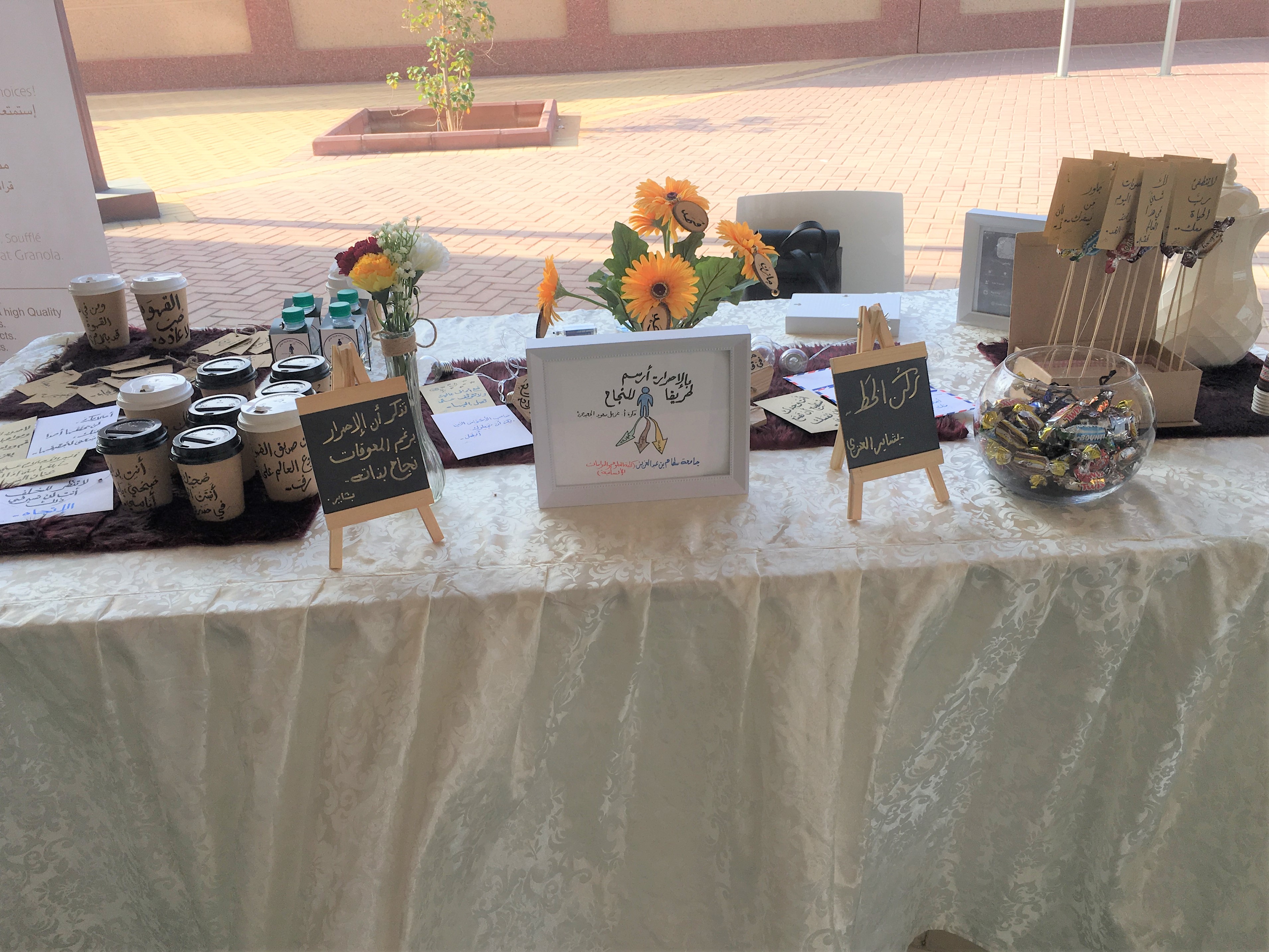حيث أن هذا اليوم يخدم الخريجات والمتوقع تخرجهن من الطالبات كذلك الباحثات عن العمل فكان هناك معرضًا يضم أركانًا للجهات المشاركة وتم افتتاح هذا المعرض من قبل سعادة وكيلة الجامعة لشؤون الطالبات الدكتورة بشرى بنت أحمد الحماد و وكيلة الكلية الدكتورة نوال عبد العزيز الفهيد