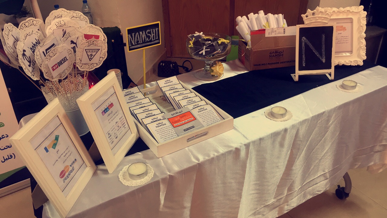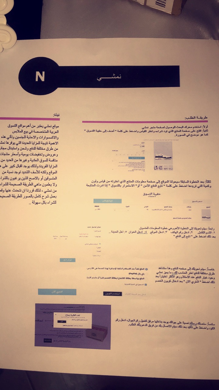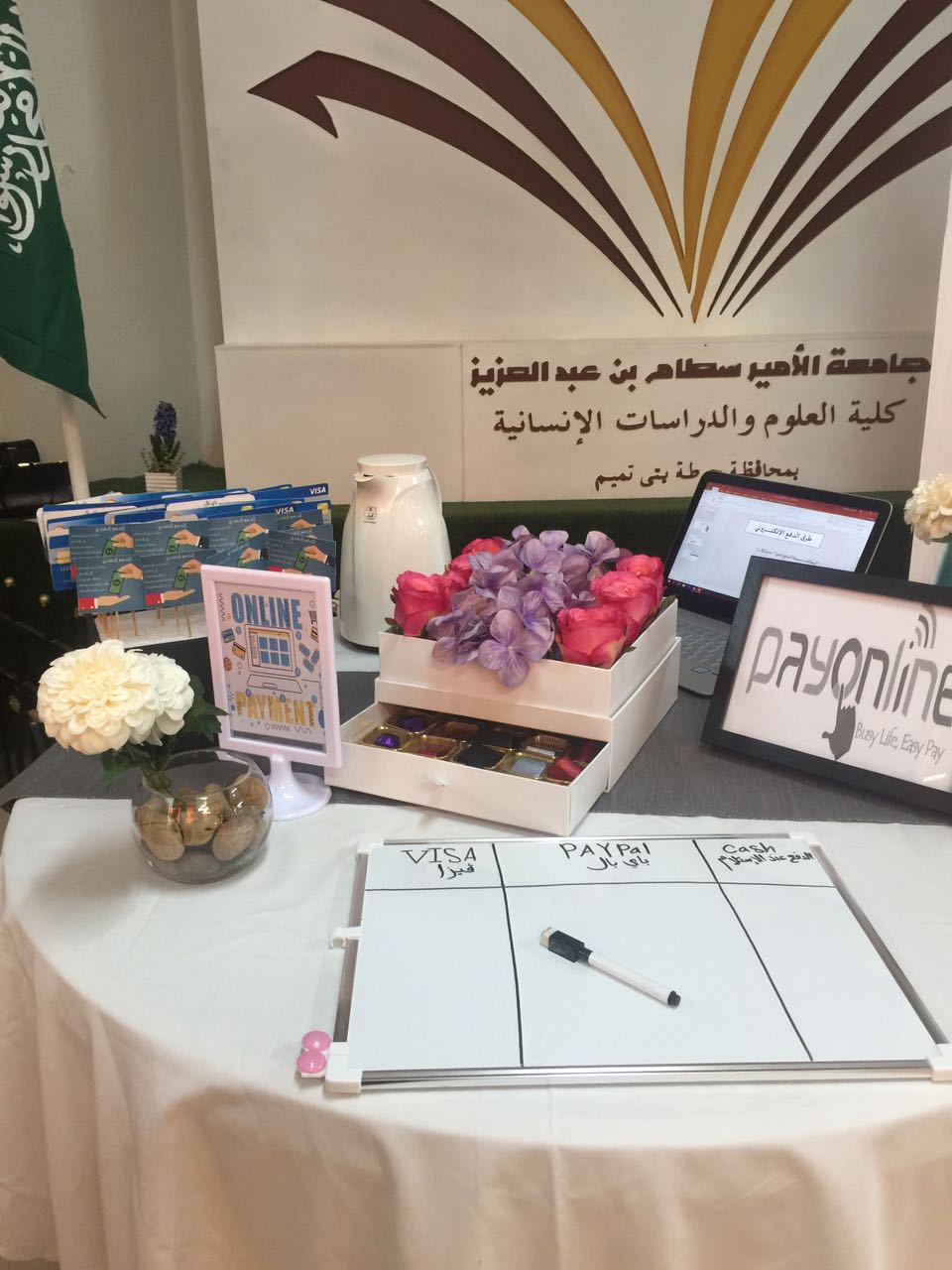 رابعًا: أقامت الطالبات أربعة أركان لأشهر أربعة مواقع تسوق إلكترونية مختلفة من حيث المنتجات المباعة كموقع نمشي ومن خلال هذه الأركان تم توضيح كيفية التسجيل في الموقع وعملية الشراء والدفع وتتبع الطلب حتى وصوله إلى المستخدم.