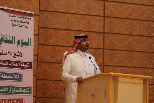 أقامت كلية هندسة وعلوم الحاسب يومًا ثقافيًّا وذلك بحضور الدكتور/ محمد بن بطاح الشمري عميد الكلية والدكتور/ مسفر بن محماس الكبيري عميد شؤون الطلاب والدكتور/ عبدالعزيز بن عبدالله الداعج وكيل الكلية ورؤساء الأقسام الأكاديمية بالكلية وعدد من أعضاء هيئة التدريس وعدد كبير من طلاب الكلية.