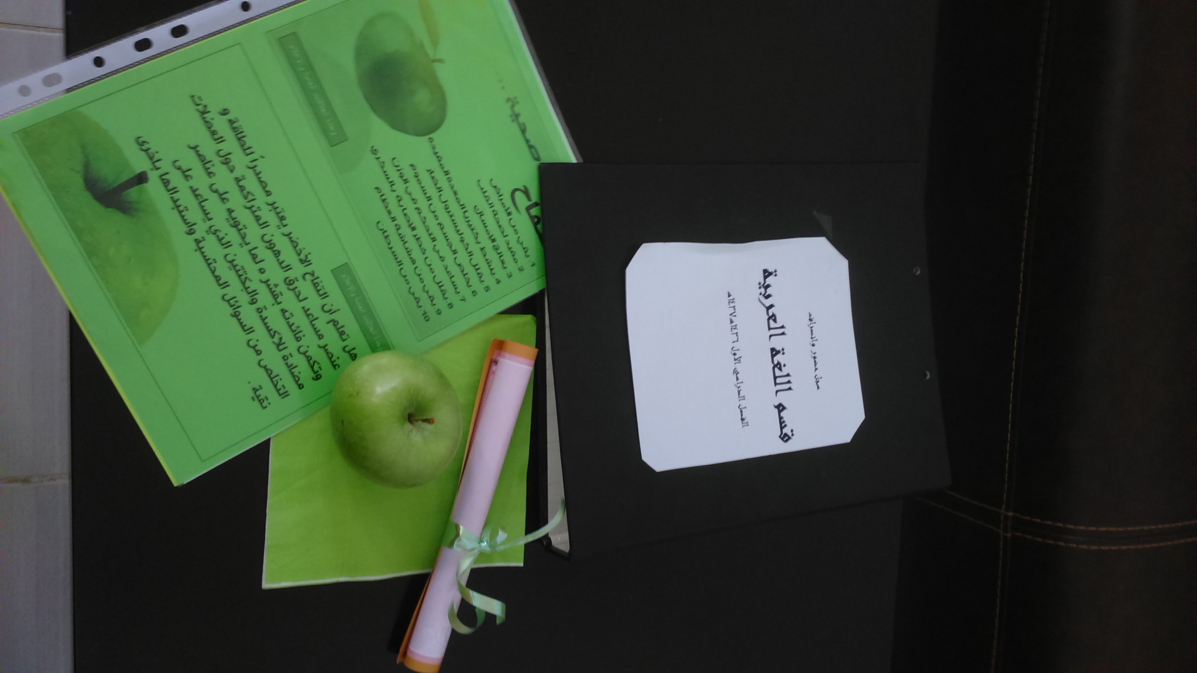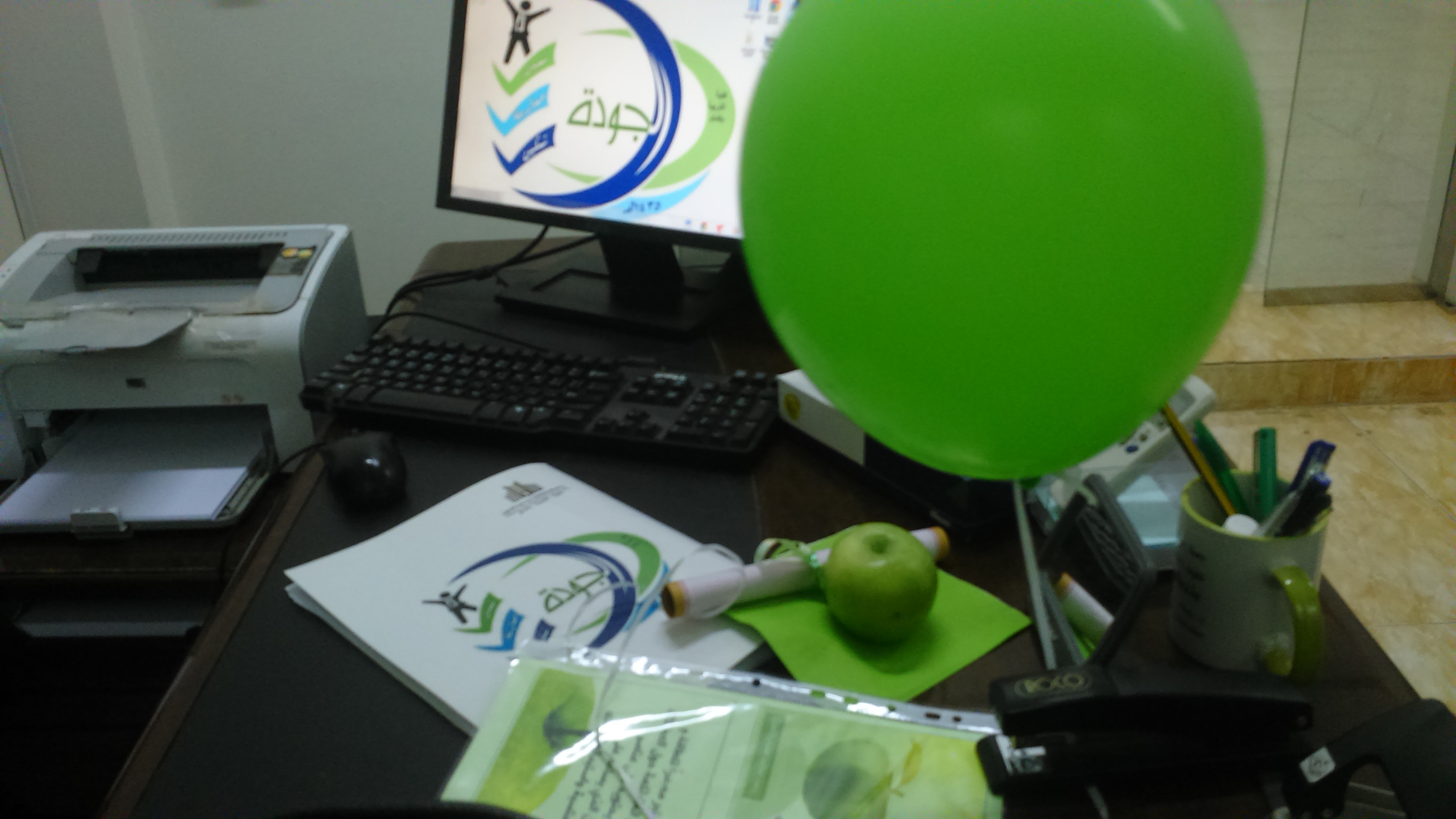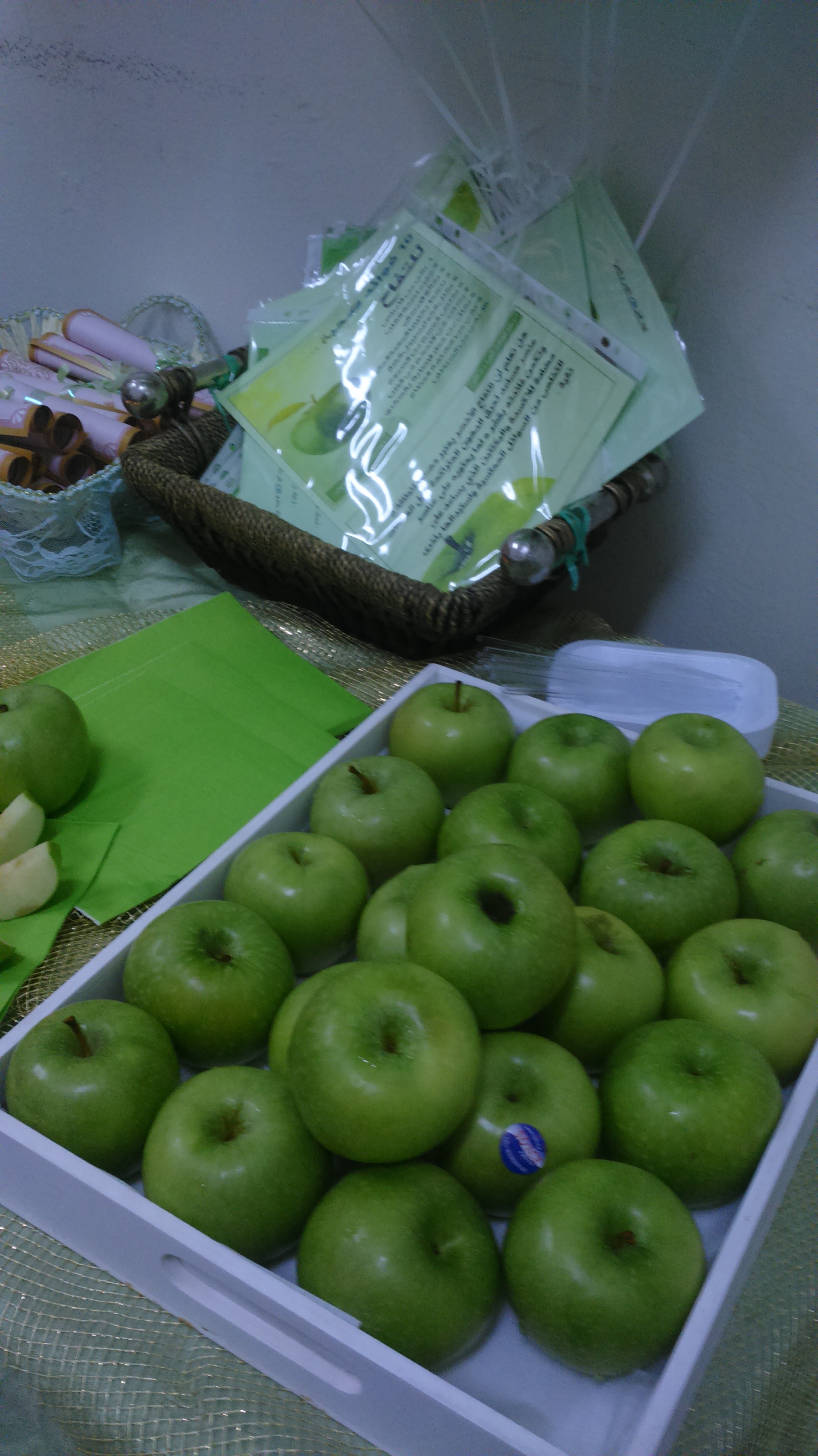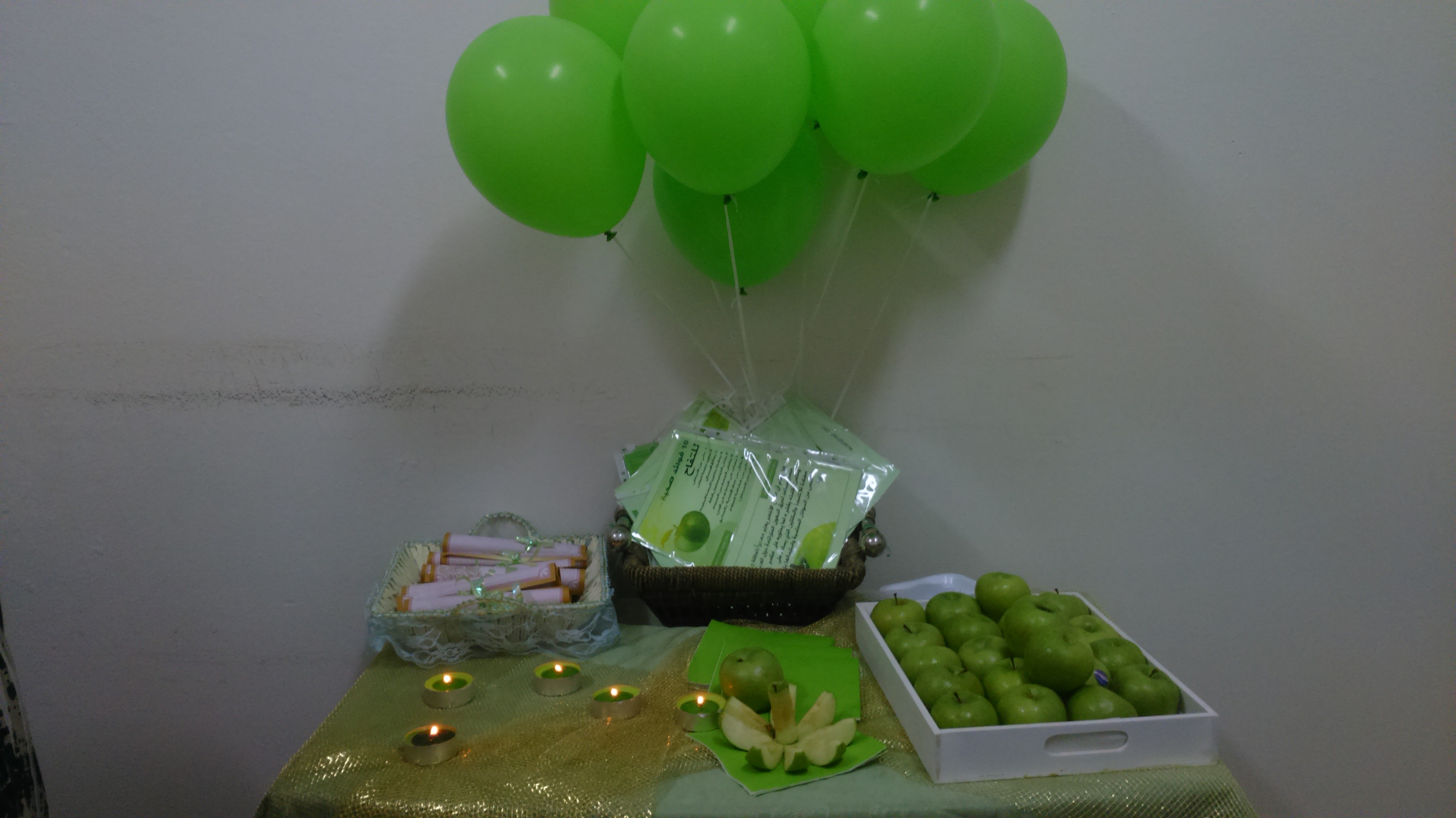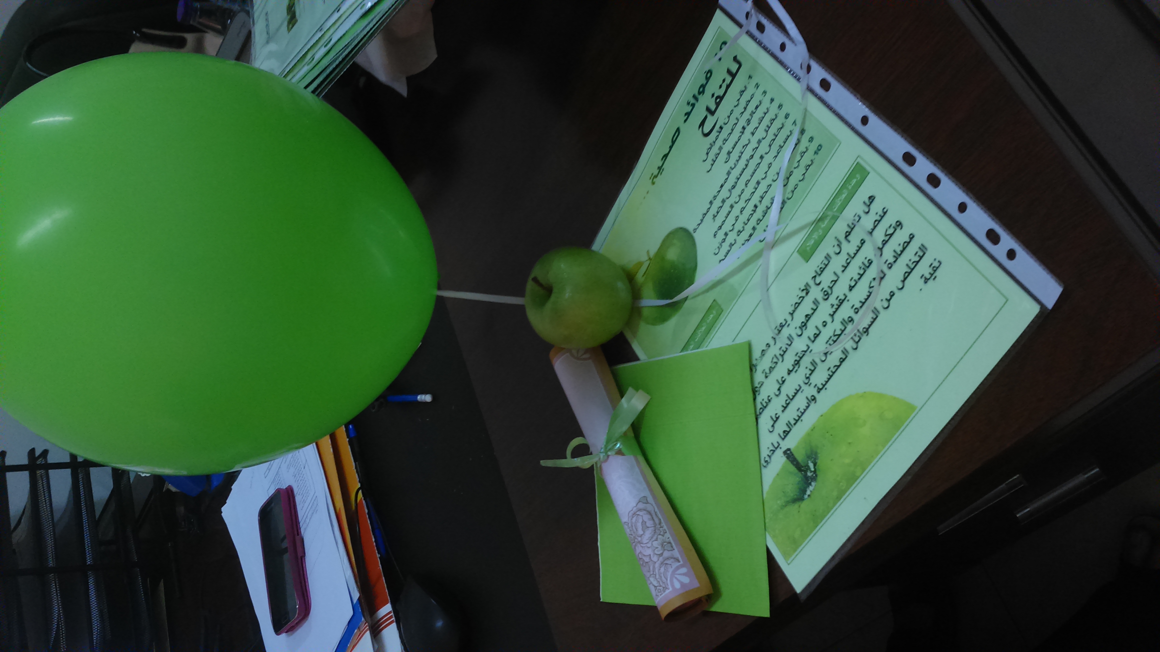 تم خلال اليوم توزيع المنشورات والمطويات ، و التفاح الأخضر على منسوبات الكلية في مكاتبهن مع إعطاء نبذة موجزة عن أهمية التفاح الأخضر وإيصال رسالة ودعوة للجميع إلى تغير عادتنا الغذائية إلى كل ما هو صحي ومفيد .