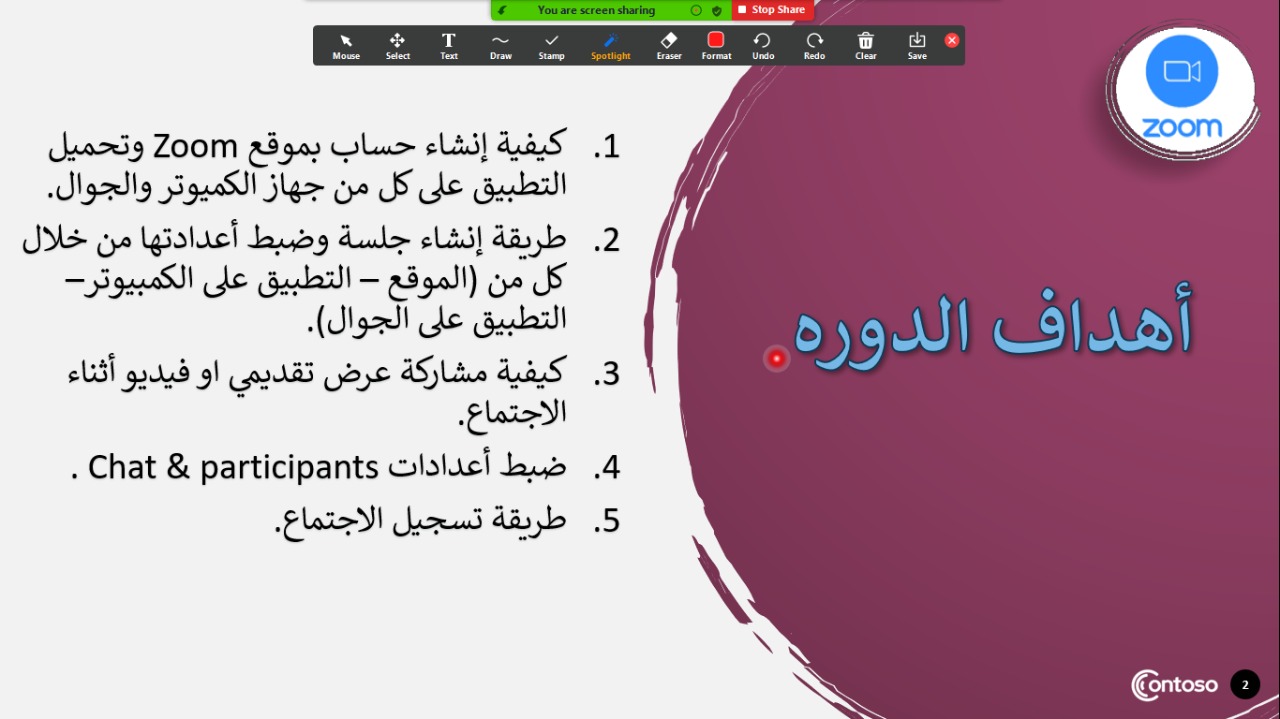 يعد برنامج ZOOM أحد أهم المنصات التي ساهمت بشكل كبير في التعلم عن بعد، حيث يعتبر أحد الحلول المثلى للقاءات الرسمية والاجتماعات، فهو طريقة إبداعية لتقديم بيئة تفاعلية، حيث أنه يعد أداه سهلة وبسيطة الاستخدام، لذلك أقامت وحدة التدريب والتخطيط دورة بعنوان " ZOOM PROGRAM " وذلك يوم الثلاثاء 5/ 2/ 1442هـ عبر منصة ZOOM قدمتها د. مروة سليمان جمعان ، بحضور العديد من منسوبات العمادة. تضمنت الدورة شرح لكيفية التسجيل بالبرنامج وتطبيقاته، وتعريف الحضور على أساسيات البرنامج و أهم مميزاته، كما تم خلال الدورة شرح مفصل لكيفية إنشاء الاجتماعات وضبط أعداداتها وتسجيلها، ولقد فتح المجال لاستقبال الاستفسارات والإجابه عليها، وقد لاقت الدورة إعجاب واستحسان الحضور.