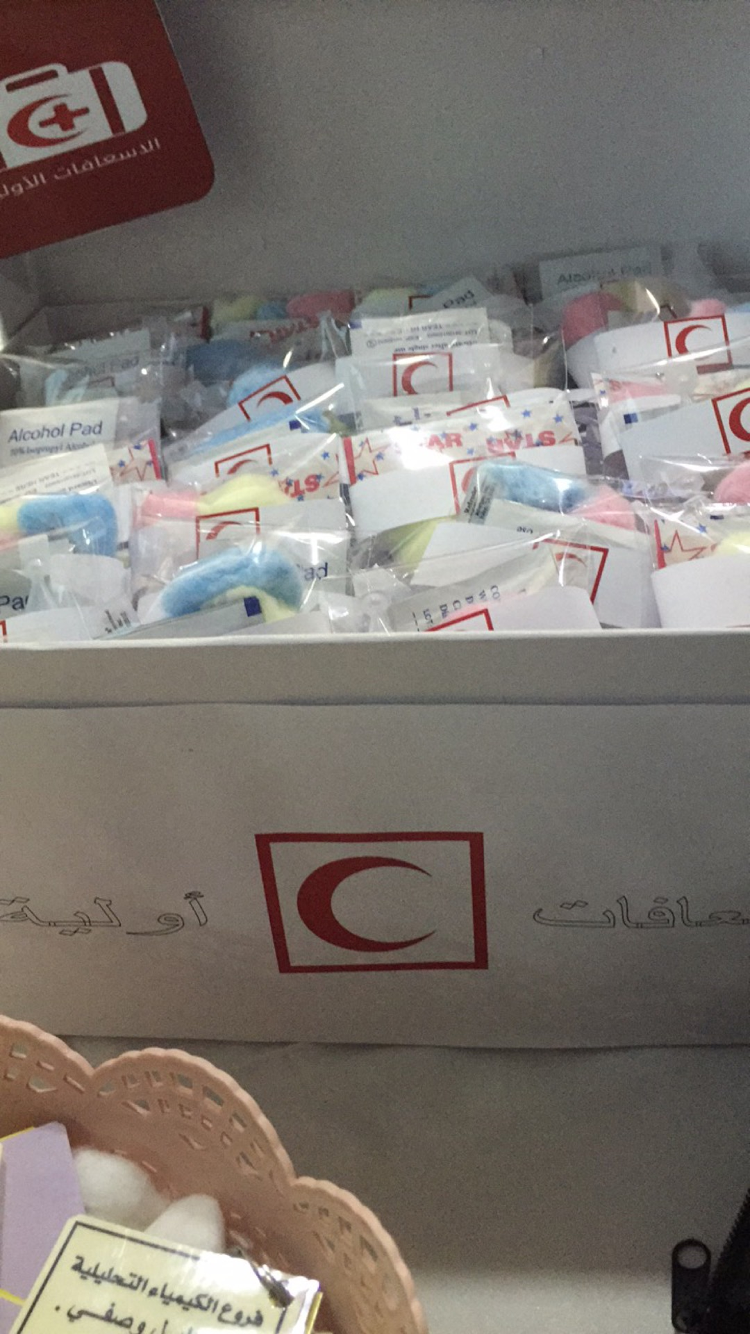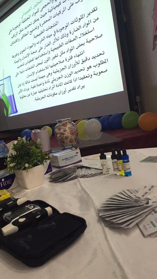 وفي الختام قمن الطالبات بعمل تحاليل لفصائل الدم وقياس للسكر الدم للحضور.