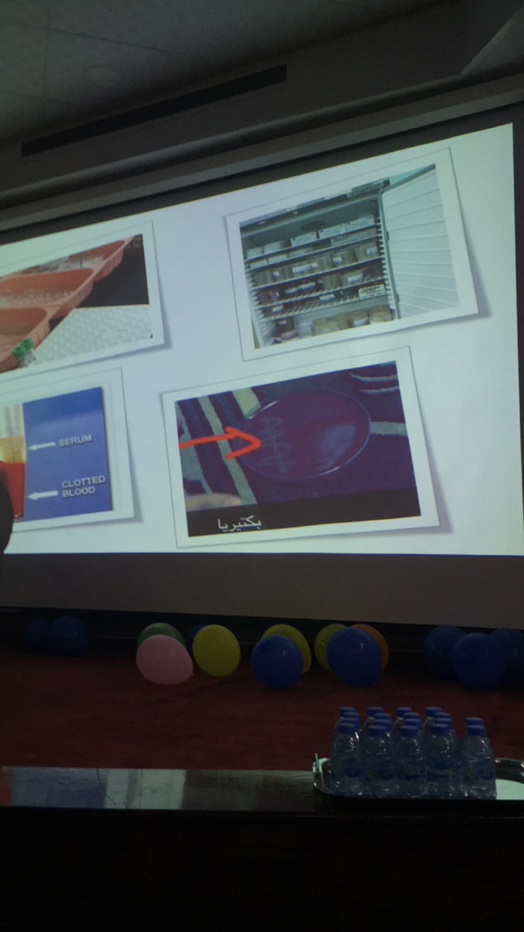 وقد قمن الطالبات بالتعريف بمهنة أخصائي المختبر بأنه الشخص الذي يقوم بأداء الفحوصات المخبرية اللازمة داخل المختبر والتي تخدم بشكل مباشر أو غير مباشر المريض و أداء سير عملية التعرف على المرض .