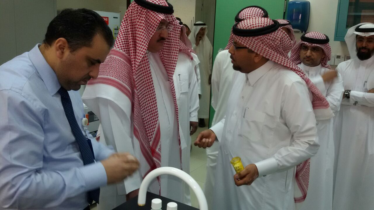 قام صاحب السمو الملكي الأمير عبدالعزيز بن سطام بن عبدالعزيز برفقة صاحب المعالي مدير الجامعة بزيارة معامل الأبحاث بكلية الصيدلة يوم الاثنين 8/7/1436هـ الموافق 27/4/2015م الساعة العاشرة صباحاً وكان في استقبالهم سعادة عميد كلية الصيدلة ومدير إدارة الكلية وأعضاء هيئة التدريس بالكلية حيث شرح سعادته للوفد الزائر عن معامل الأبحاث وأجهزته.