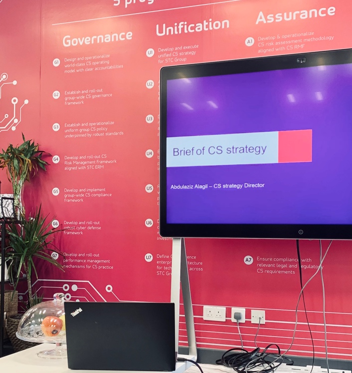 وقد ترأس ورافق الوفد الطلابي أثناء الزيارة الاستاذة : نورة المحيسن حيث كانت في استقبالهم الأستاذة لطيفة الزكي (محللة أداء وشراكات الأمن السيبراني) حيث قامت بتقديم شرحاً مفصلاً عن لهيكلة الشركة في الأمن السيبراني , بعد ذلك قدم (مدير إدارة استراتيجيات الأمن السيبراني) الأستاذ عبدالعزيز العقيل للوفد شرحاً مفصلاً عن بيئة العمل والأقسام الفرعية الموجودة في الشركة والتي تندرج تحت قسم الأمن السيبراني , بعد ذلك تحدث للوفد (محلل إستجابات الحوادث بالشركة) الأستاذ فهد المبارك عن آلية عمل ومراقبة النظام من خلال شاشات البلاغات كما تحدث كلاً من الأستاذة الهنوف المقرن والأستاذة نوف القحطاني لطالبات كلية هندسة وعلوم الحاسب عن قسم الإختراقات بالشركة وكيفية إختبار آمان تقنياتها , بعد ذلك توجه الوفد إلى مدير شعبة الفحص الأمني بالشركة الأستاذ أحمد طيار الذي قدم لهم توضيح لقسم الإختراق الذي يتم من خلاله اختبار أمان تقنيات الشركة , بعد ذلك توجه الوفد إلى مدير إدارة الالتزام بالأمن السيبراني الأستاذ: سلطان القحطاني و وضح لهم مايحتوي عليه قسم الإدارة و التحكم بالمخاطر و الامتثال (GRC) , بعد ذلك تحدث إلى الوفد مدير إدارة مراقبة التهديدات و الثغرات الأمنية الأستاذ: فهد السهلي عن الدفاع Defense , بعد ذلك قامت مديرة شعبة شراكات الأمن السيبراني د. فاطمة التركستاني بالتحدث مع الطالبات في مجالات الأمن السيبراني , بعد ذلك تحدثت مستشارة إدارة تمكين الأمن السيبراني الأستاذة: بسمة حميدوش عن مستقبل الأمن السيبراني و مدى أهميته واحتياجه في سوق العمل و مساهمته في تحقيق تطلعات رؤية ٢٠٣٠ و تحدثت أيضاً عن تمكين المرأة في الأمن السيبراني في المملكة العربية السعودية .