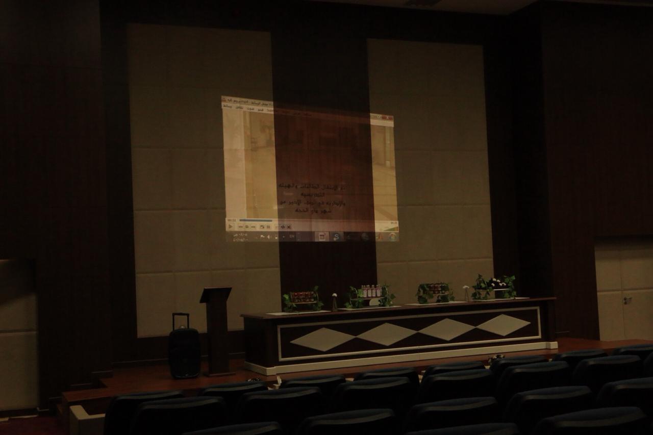 تقدمت مديرة الإدارة أميره النادر بعرض مرئي تناولت فيه آلية الأنتقال للمبنى وتاريخ الافتتاح الرسمي وتعريف عن مبنى الكلية ومرافق المبنى وتعريف عن الأقسام والوحدات ومشرفات الأقسام .