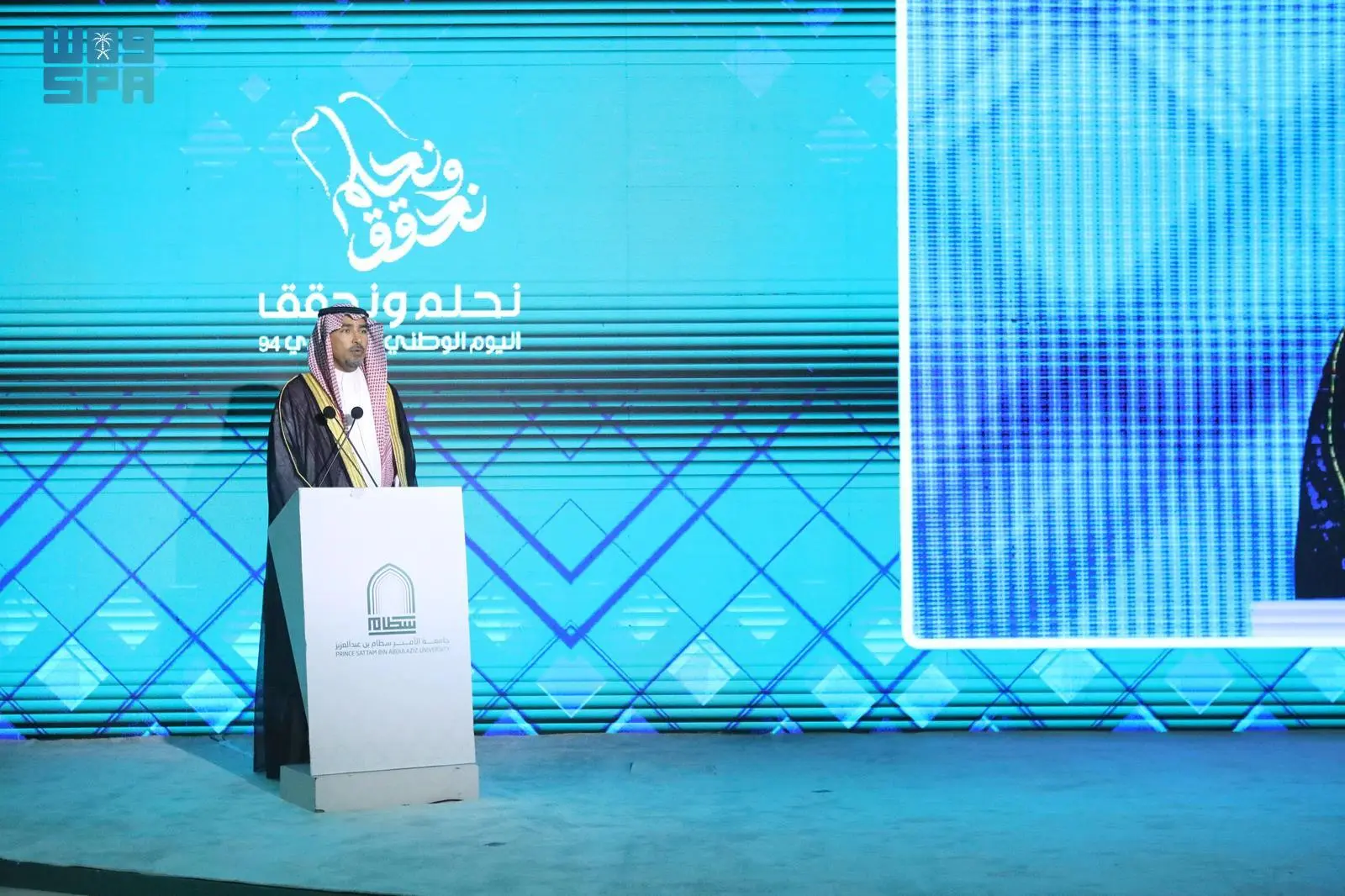 Prince Sattam bin Abdulaziz University celebrated the 94th Saudi National Day at the theater and lobby of Building 6 on the university campus in Al-Kharj.