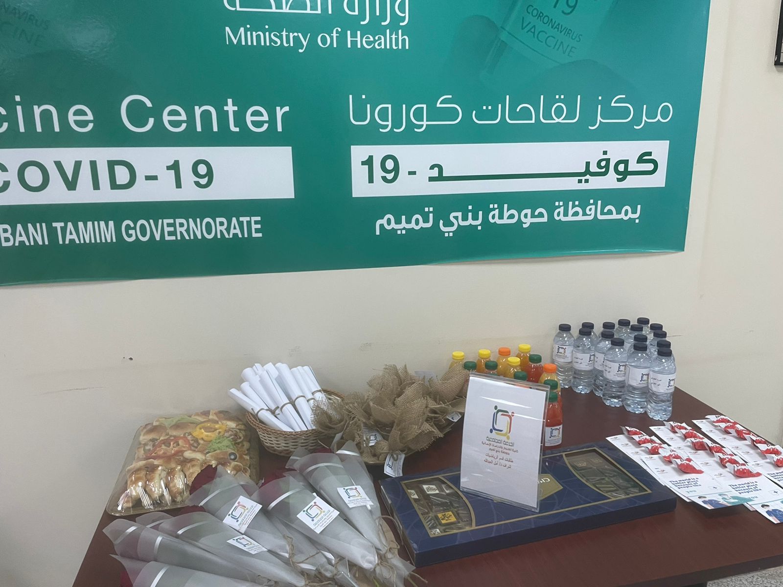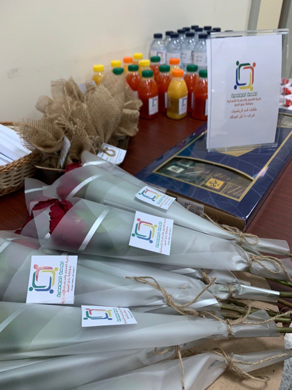 انطلاقاً من أهمية مشاركة كلية العلوم والدراسات الإنسانية بحوطة بني تميم برعاية عميدتها د. حصة بنت سعود الهزاني في تعزيز الدور المجتمعي الهادف إلى تكريم من لا يدخرون جهداً في خدمة وطنهم بصفة عامة ومجتمعهم بصفة خاصة، المشاركين في ترجمة حرص واهتمام قيادتنا الرشيدة بصحة وسلامة المواطن والمقيم أطلقت وحدة التدريب والخدمة المجتمعية في الساعة 4 مساء من يوم الإثنين الموافق: 17/ 4/ 1443هـ بإشراف د/ أميرة صالح وأ/ أمل آل عبدالله التميمي وبمشاركة طالبات قسم الرياضيات مبادرة عبارة عن ركن احتوى على ضيافة وتوزيعات وهدايا تحمل عبارات تشجيعية لتكريم العاملين في مركز اللقاحات بحوطة بني تميم من أطباء ومشرفين ومتطوعين تقديراً لما يقدمونه من جهود في خدمة الوطن والعطاء الدؤوب في محاربة فيروس كورونا.